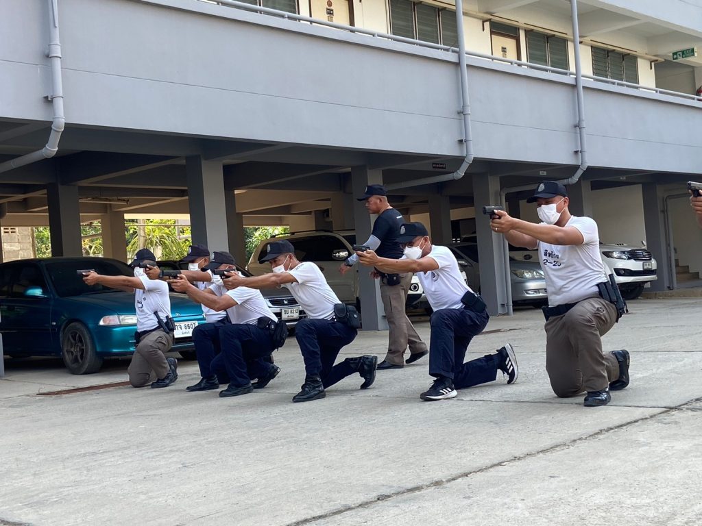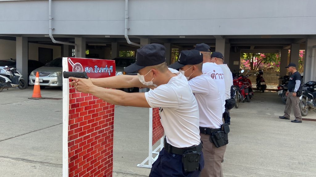 วันที่ 29 มี.ค.66 เวลา 15.00น. ภายใต้การอำนวยการของ พ.ต.อ.สุวิทย์ นันทกอบกุล ผกก.สภ.อินทร์บุรี พ.ต.ท.อนุชา แสงดี รอง ผกก.ป.สภ.อินทร์บุรี พ.ต.ท.นพดล ใจหลวง สวป.สภ.อินทร์บุรี พร้อมข้าราชการตำรวจ ชุดฝึกฯ ชุดที่ 1 สภ.อินทร์บุรี อบรมชี้แจงนโยบายการปฏิบัติงาน และ ฝึกยุทธวิธีในรูปเเบบ combat handgun 1.ท่าเดินยิง 2.ท่านั่งยิง 3.ท่านอนยิง 4.การเข้าที่กำบัง โดยมอบหมาย ร.ต.อ.ปุญชรัสมิ์ ชูทอง รอง สวป.ฯ ทำหน้าที่ครูฝึก ณ บริเวณหน้า สภ.อินทร์บุรี