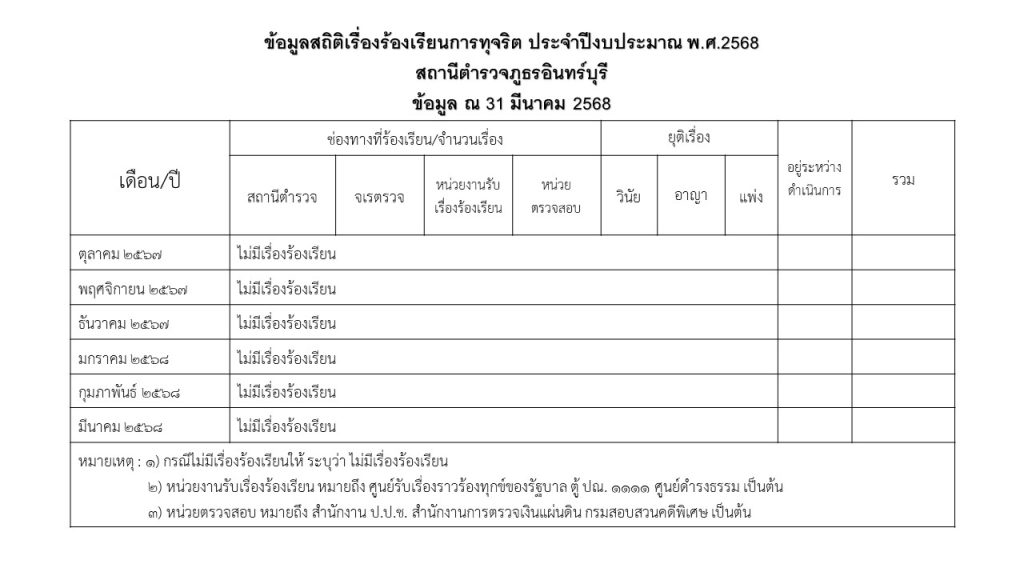 ข่องทางแจ้งเรื่องร้องเรียนการทุจริตและข้อมูลเชิงสถิติเรื่องร้องเรียนการทุจริต