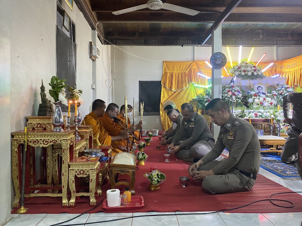 ร่วมเป็นเจ้าภาพสวดพระอภิธรรมศพ บิดาของ ร.ต.ต.อมรเทพ สิทธื์น้อย รอง สว.(ป.) สภ.อินทร์บุรี และมอบเงินสวัสดิการโครงการเงินฌาปนกิจช่วยเหลือข้าราชการตำรวจและครอบครัว สภ.อินทร์บุรี ให้กับ ร.ต.ต.อมรเทพ ฯ ณ บ้านเลขที่ 16/3 ม.10 ต.ทับยา อ.อินทร์บุรี จ.สิงห์บุรี