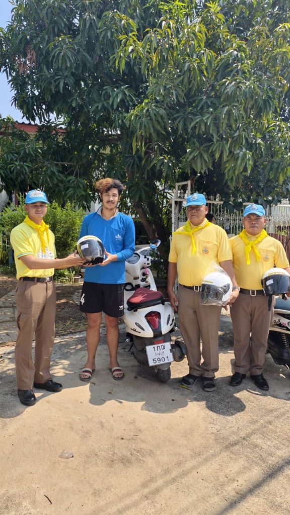 ➡️แจกหมวกกันน็อคนิรภัยให้แก่ประชาชนที่ขับขี่จักรยานยนต์ และไม่ได้สวมหมวกทั้งคนขี่-คนซ้อน เพื่อความปลอดภัยของประชาชน ในช่างเทศกาลสงกรานต์ 2568 “ตามโครงการจิตอาสาพระราชทาน”